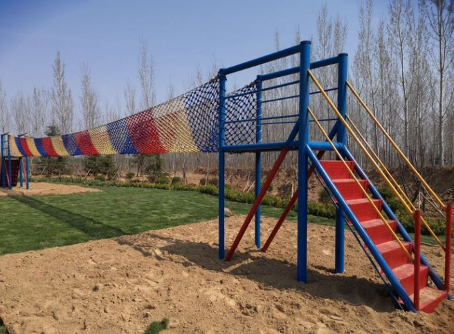 挑战型的无动力游乐场设备都会比较刺激,一般有障碍跨越、攀登、速降等玩法,所以这类游乐设备一般对高度、坡度都会有要求,这类无动力游乐场设备一般都需要询问挑战者事先有没有做好准备,有些甚至会要求挑战者系好安全带。像这一类的游乐场设备有“空中滑梯”、“山坡滑梯”、“高空攀爬网”等等,这种挑战型的无动力游乐场设备适合14岁以上的孩子游玩。